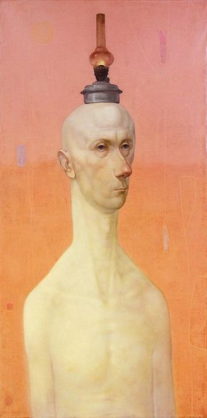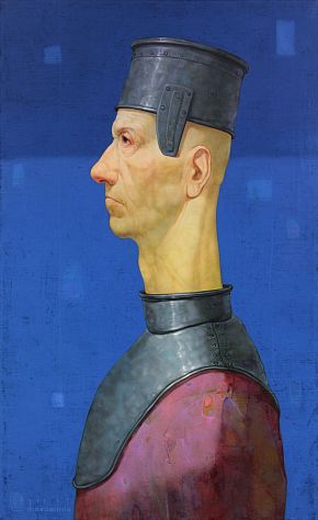 During his entire career, Didebashvili worked with both figurative and abstract painting, and in the end he merged two practices together in his late mature portraits. In his practice Mamuka employs the intricate and demanding layered Flemish painting technique that was used by the old masters of the Northern Renaissance. At first, Mamuka’s characters seem to resemble the ones of the Flemish masters, but because of the bright colours and the abstract background, Didebashvili’s characters seem to be taken out of any time or georgraphic context.