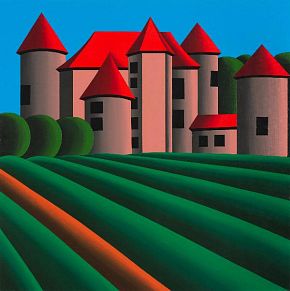 Oleg Khvostov uses themes from traditional painting genres — landscapes, still-lifes, portraits, multi-figured compositions — but also includes numerous "remakes" of world-famous works of art, from Leonardo to Jeff Koons. Nonetheless, his characteristic method of consciously simplifying form, freeing it from excess detail, and giving underscored roundness and cylindricity to shapes, in conjunction with his bold colors and large canvases, make his artistic manner original and easily identifiable. His use of a vivid, contrastive color palette and his deliberate simplicity imbue the artist's works with the decorative effect and irony of pop art.