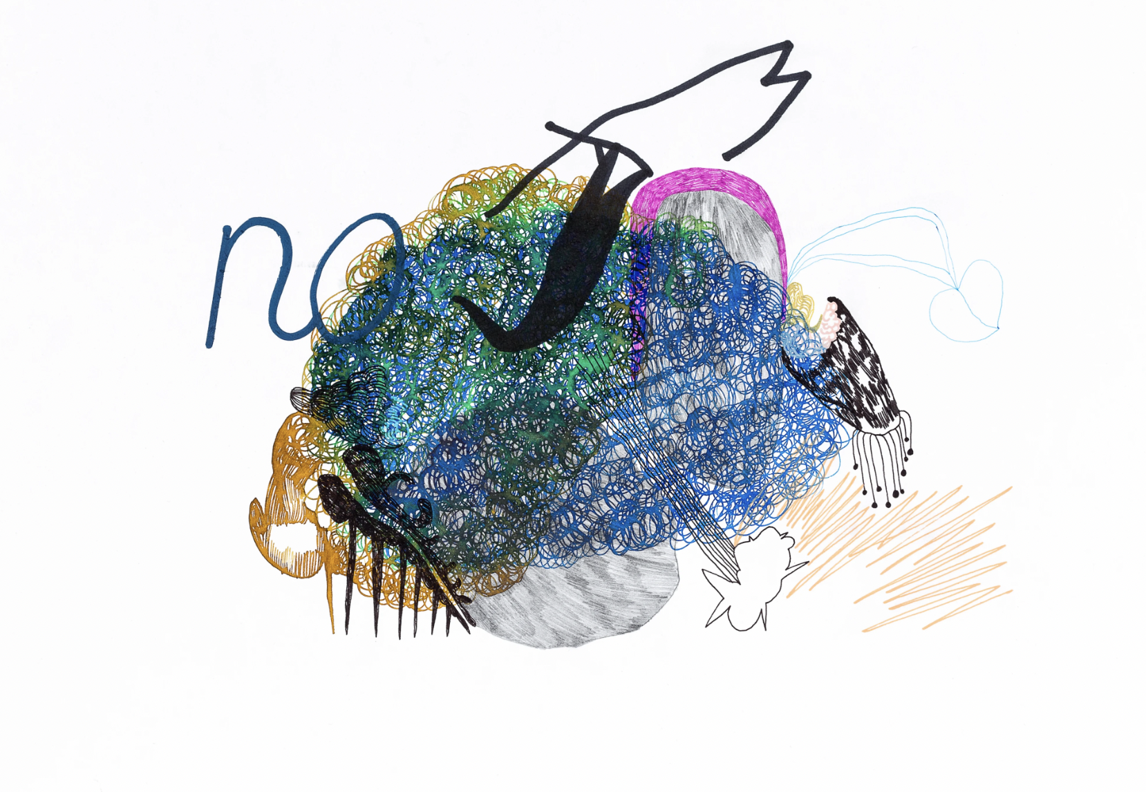 Materials: watercolor, pencil, gel pen, marker on paper