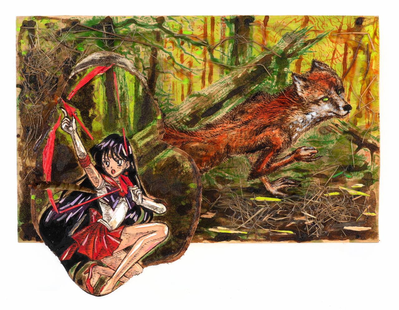 Fedor Hiroshige works with various media, but as his main medium he most often turns to wood using the pyrography technique. Hiroshige's artistic method is based on the study of images of popular culture and folklore by placing them in the context of Eastern (Tibetan, Chinese, Japanese) spiritual practices. The paradoxical synthesis of different cultures and times allows the author to create recognizable post-apocalyptic worlds, where the traditional dichotomies of nature and culture, male and female, real and fictional, material and ideal, ancient and modern lose their actual status, turning out to be artificial constructs.