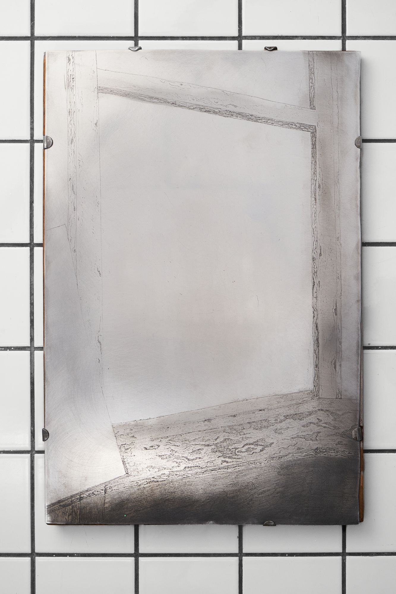 Материалы: Старая деревянная рама от зеркала, алюминий, гравировка