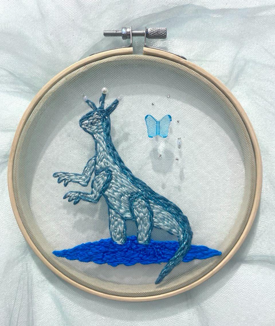 В проекте “Музей современного искусства. Динозавры навсегда”, я собираю всевозможные виды ремесел и медиумов, которые хочется попробовать на практике. Планирую исследовать все возможные варианты, вплоть до самых абсурдных и нелепых. Соединить несопоставимые с динозаврами объекты и персонажи. И сделать из этих поисков оммаж выставке Марселя Бротарса».