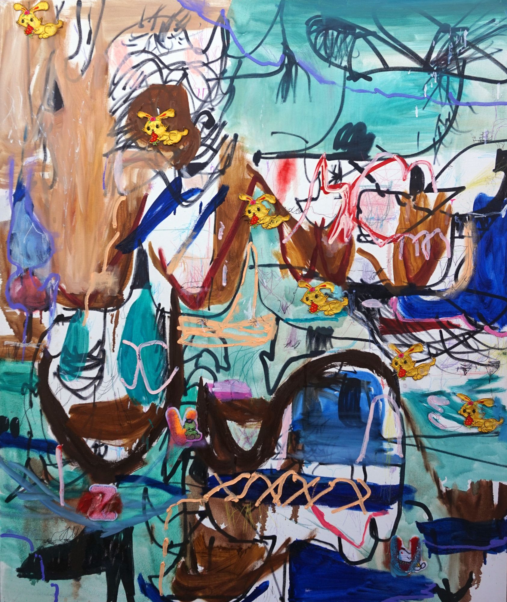 His semi-abstract objects made of wood, toys, fabric, and enameled metal resemble monsters, mutated organics and deformed figures of people. These images with a touch of expressionist manner can also be found in his painting. He combines several pieces in installations built around fictional stories and characters.
