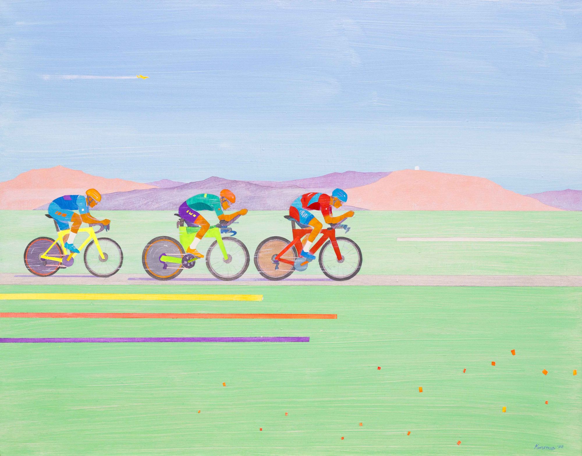 In his work Kirill Kipyatkov combines abstract and figurative painting. His main themes are a human and his activities. They are invariably attractive to the author as areas of physical activity. Since 2017 he has been working on a series of paintings dedicated to leisure and life in nowaday’s Moscow. The artist works in traditional painting techniques and uses wood, aluminum, pure pigments and reflective materials in his art-practice as well.