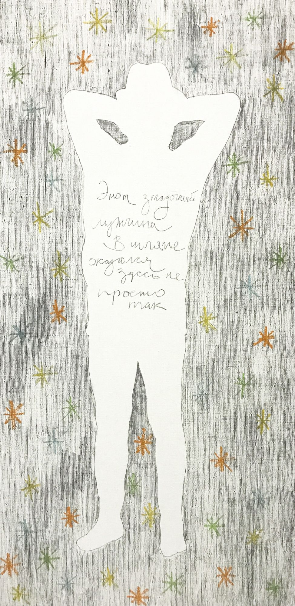 The artist snatches the characters out of reality using a photographic lens and after a while brings them back to reality, focusing on the loneliness, fragility and defenselessness of figures due to the contrast of the urban environment and the fragility of paper, the scale of the wall and the size of the picture.