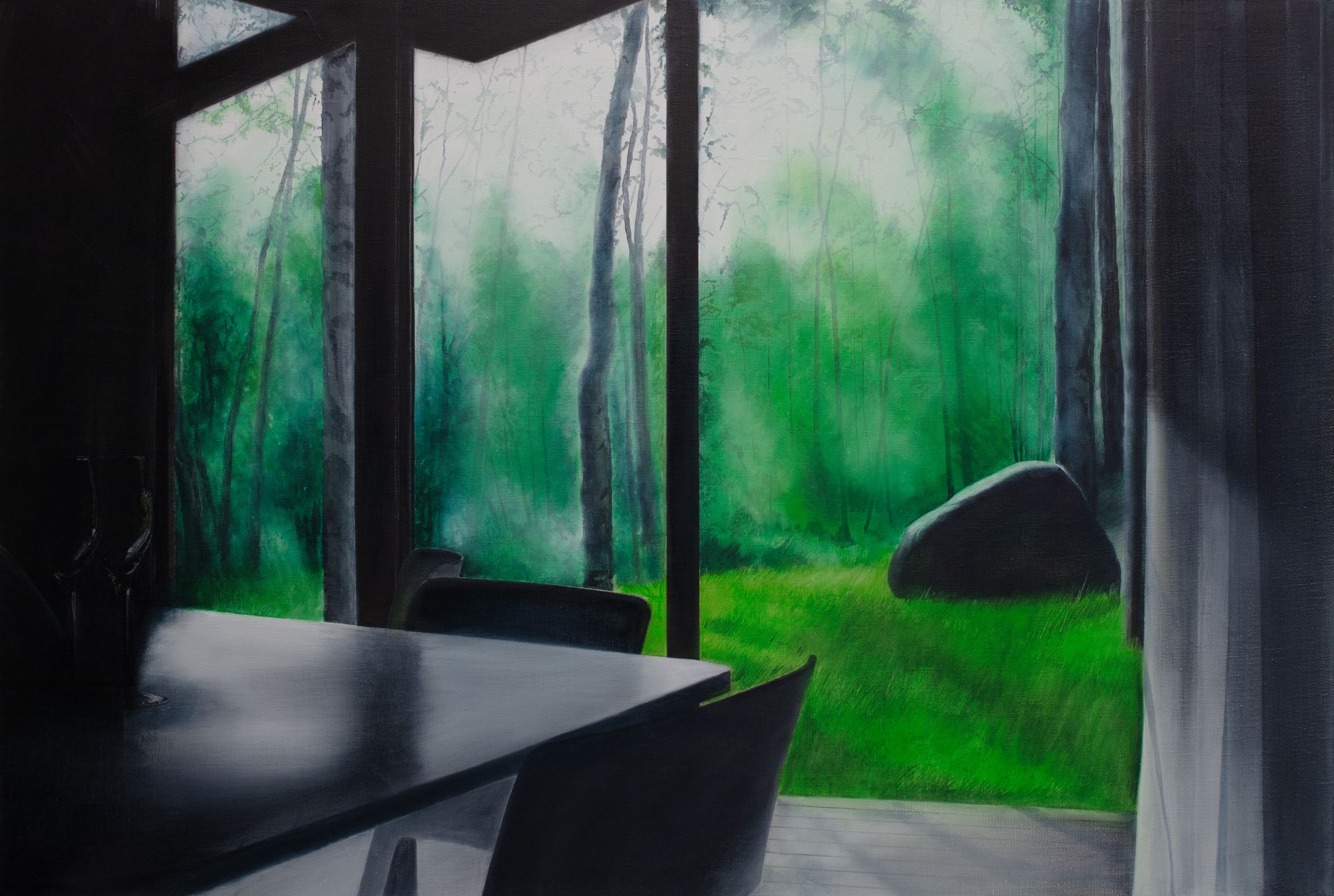 Evgeniya Buravleva works with ideas of time and space. Used classic forms of painting Buravleva ranges relations between space, time and person inside. The personage of art- works is the person exhausted by the present, forced to be in conditions of post-truth world, lonely hero at the threshold of decision making. Space and time in art-works are connected with personage and depended on his actions, they are detached not for a while yet, not assimilated and hang in sleep mode.