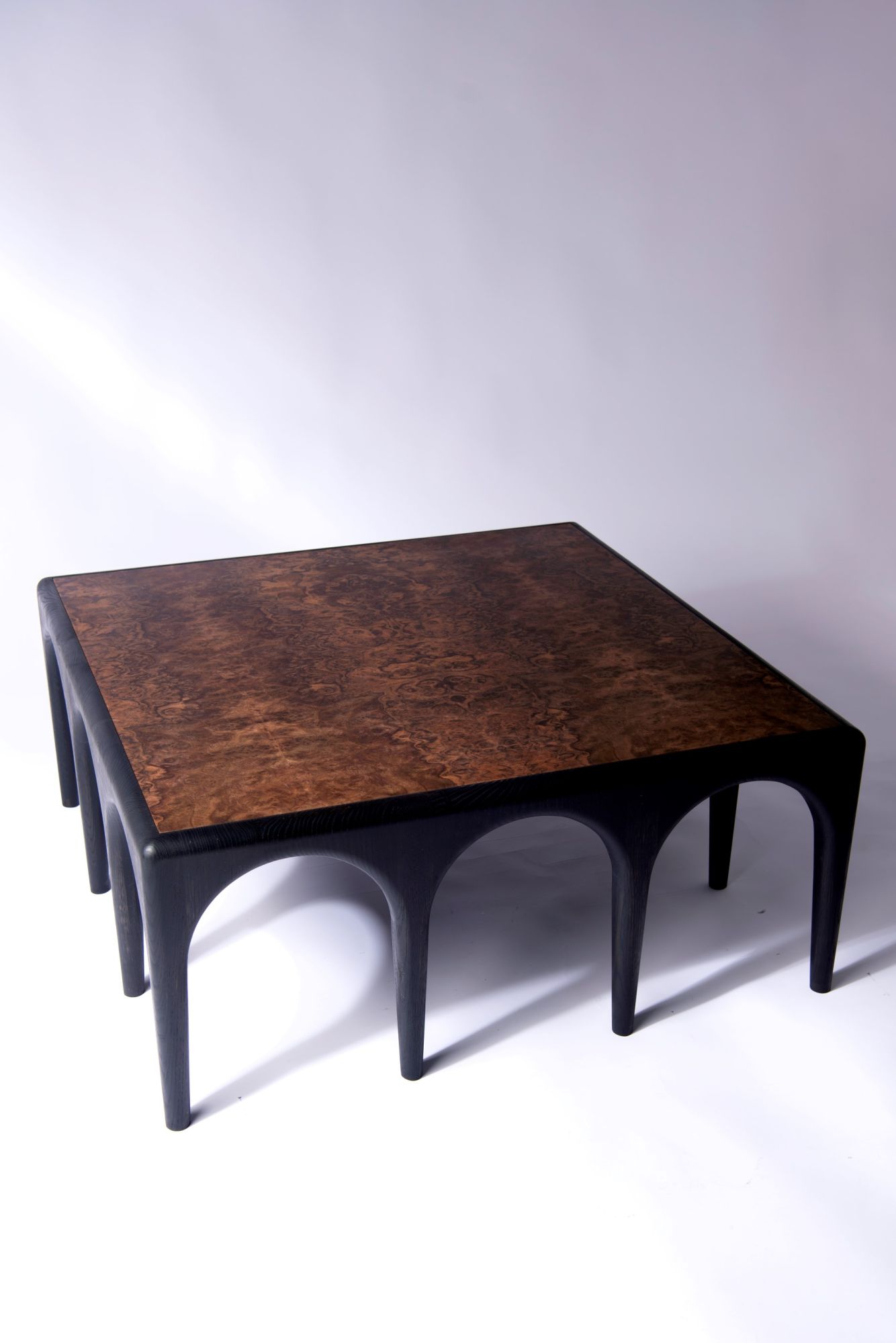 Materials: solid oak, black coating based on natural oils; tabletop: solid oak, brushed, transparent oil
