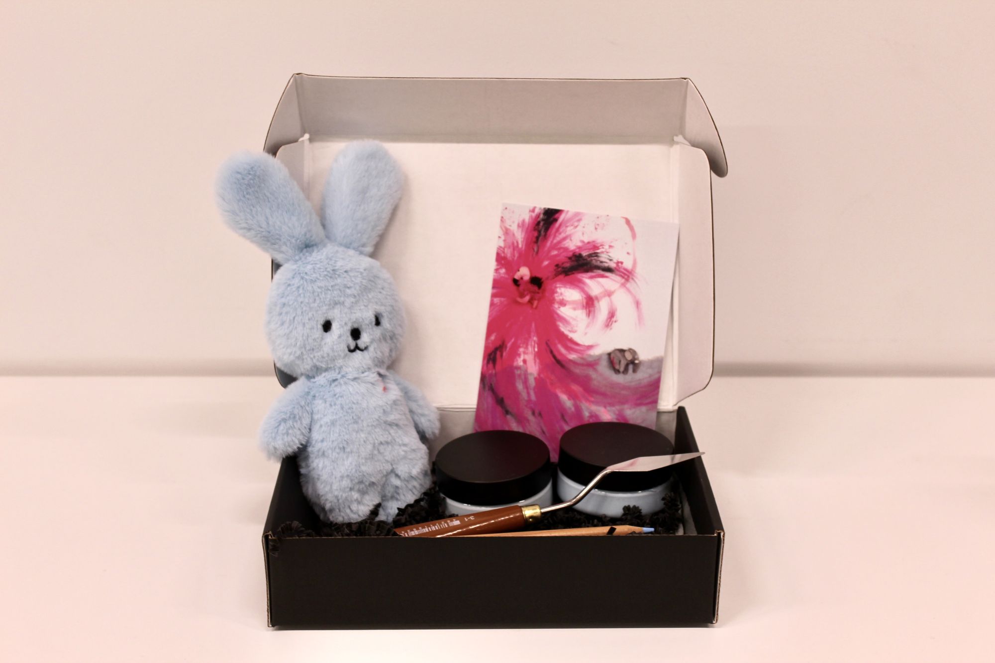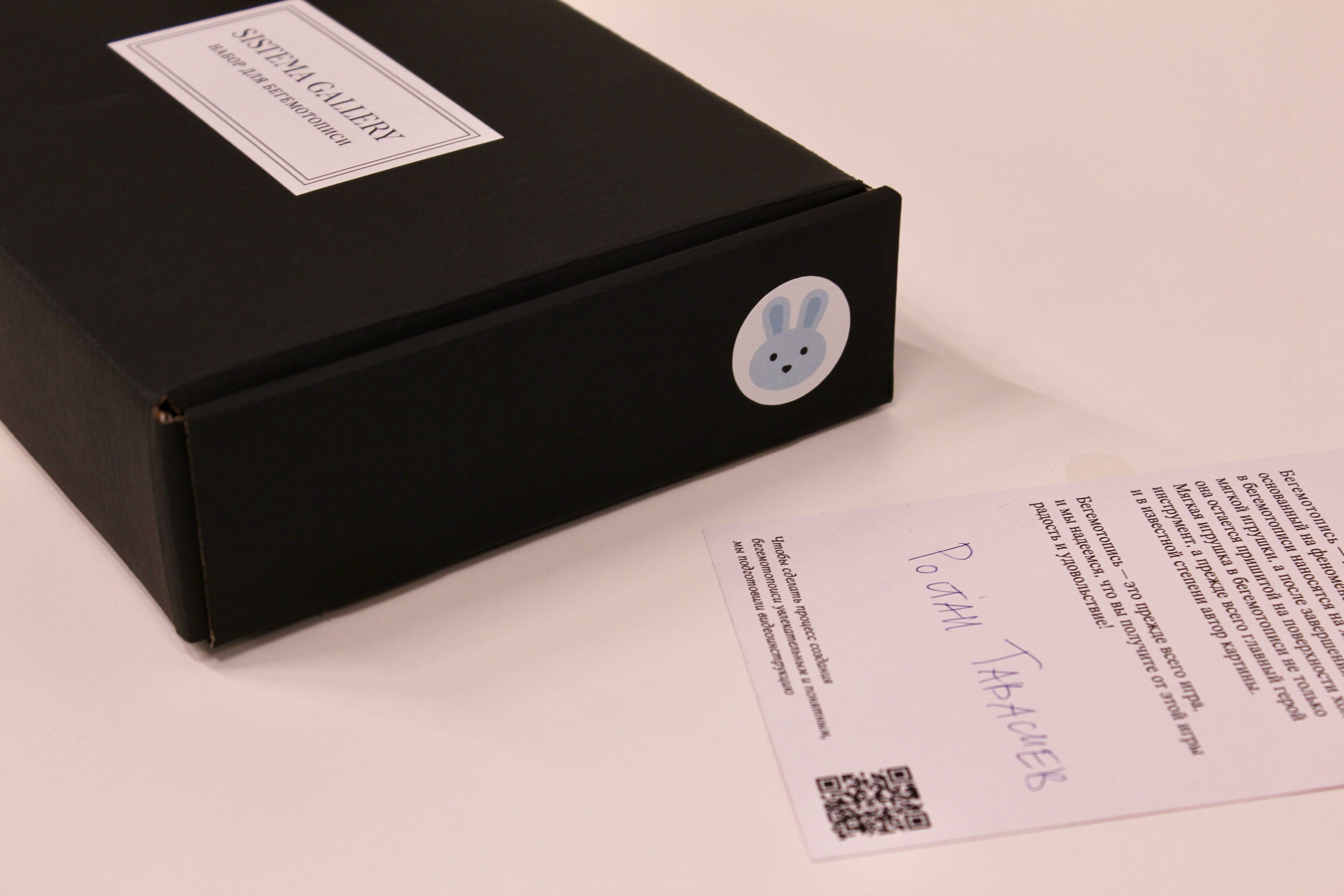 Материалы: 1 игрушка, 2 банки с краской по 50мл, холст (60 х 80 см), цветной карандаш, мастихин, нитки с иголкой, открытка с подписью художника и ссылкой на видео инструкцию